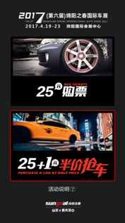 此次綿陽之春國際車展承辦方四川尚格萊德會展服務有限公司特推出“+1元半價搶車”活動,以最大的誠意和實惠回饋廣大購車客戶。