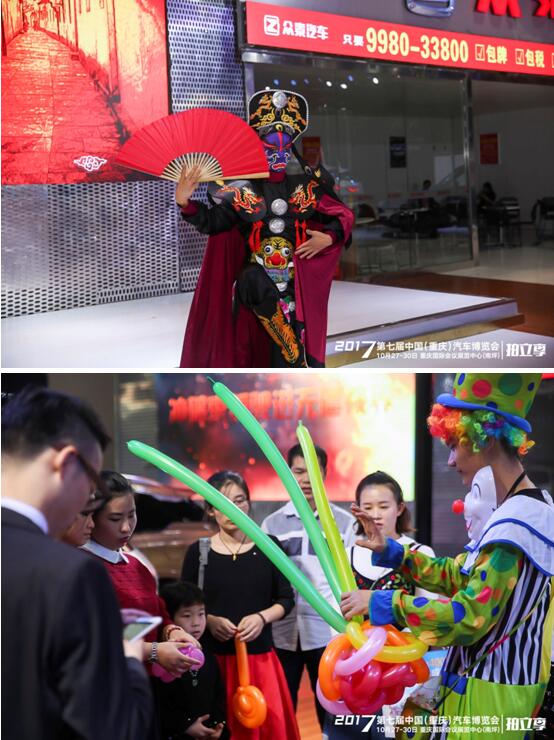 車展上除了汽車的展示,精彩紛呈的表演也是一大亮點(diǎn),火辣性感的熱舞、優(yōu)雅輕柔的車頂芭蕾舞、端莊大氣的車模走秀、神奇的藝術(shù)變臉等表演輪番上演,吸引眾多觀眾駐足圍觀。各展臺(tái)除了精彩的演繹外,還精心準(zhǔn)備了生動(dòng)有趣的互動(dòng)活動(dòng),小丑花樣編織氣球、動(dòng)感單車發(fā)電贏好禮、手機(jī)搖一搖搶福利、趣味問答得大獎(jiǎng)等,現(xiàn)場氛圍火爆至極。