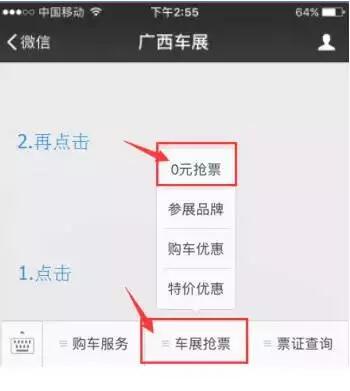 首先使用您的微信關注“廣西車展”微信公眾號:打開【廣西車展】微信號,點擊【車展搶票】,再點擊【0元搶票】即可報名。