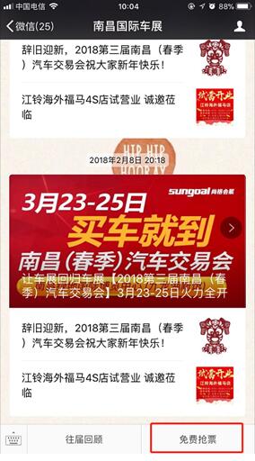 參與“免費搶票”的方式也很簡單,搜索微信公眾號“南昌國際車展”