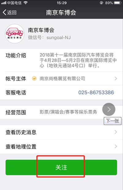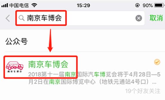 1、搜索微信公眾號(hào)“南京國(guó)際車博會(huì)”;