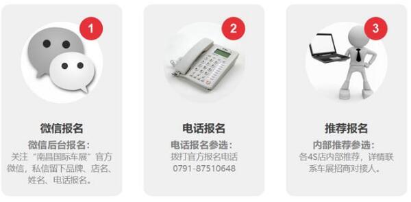 即日起至9月9日(截止時(shí)間9月9日下午17:00),各品牌汽車4S店的汽車銷售代表只需關(guān)注“南昌國際車展”官方微信,后臺發(fā)送報(bào)名信息或撥打電話0791—87510648進(jìn)行報(bào)名,還可以由各大汽車品牌單位內(nèi)部評選推薦報(bào)名 。