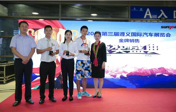 本次車展舉辦的金牌銷售評選活動,受到了各汽車廠商的高度重視。他們默默無聞奮斗在一線;他們以專業和專注為客戶服務,他們是一群充滿斗志和熱情的最美銷售。共36位銷售代表參與進來,經過20天的激烈角逐,累計總投票數達206656票,最終誕生了3位遵義人心目中的最美銷代,上汽通用五菱-遵義良駒銷售蔣斌鑫、寶馬-遵義寶源銷售馮小利、上汽斯柯達-遵義眾鑫匯銷售吳可松分獲了本次活動的冠亞季軍,尚格會展股份有限公司總經理任麗紅女士、貴陽尚格會展服務有限公司總經理李楊先生為他們分別頒發了獎項。2018遵義國際車展的金牌銷售,在車展為市民購車保駕護航,待消費者賓至如歸!