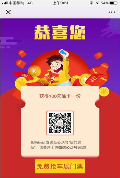 投票后抽獎獲得價值100元油卡的用戶,憑兌獎二維碼及本人有效身份證至車展現(xiàn)場兌獎處兌獎。