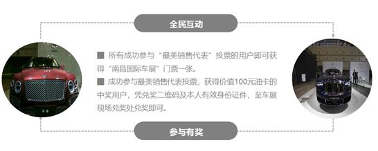 1、通過登錄南昌國際車展官網或關注“南昌國際車展”官方微信,打開江西最美銷售代表評選頁面,為喜愛的銷售代表投票,每人每天有5次投票權,最終以線上得票多少評出“最美銷售代表”。