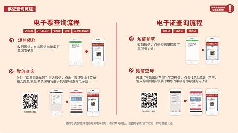 通過官方微信【南昌國際車展】“票證查詢”菜單進入證件查詢點擊“電子證查詢”菜單;電子門票查詢點擊“電子票查詢”菜單查詢;