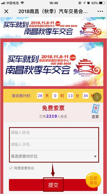 年末購車狂歡-2018南昌(秋季)汽車交易會(以下簡稱秋季車交會),即將在我大南昌隆重開演,免費搶票已于11月12日正式上線了。車展組委會讓利廣大市民,原價30元的車展門票現在免費搶,數量有限想去車展賞車購車的小伙伴們可以行動起來啦。