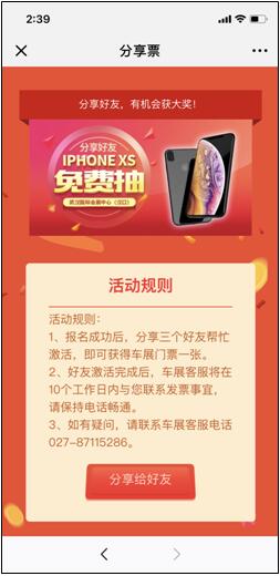 ②邀請(qǐng)三位好友幫助激活,可獲得車展電子門票一張。還有機(jī)會(huì)抽取iPhoneXS。