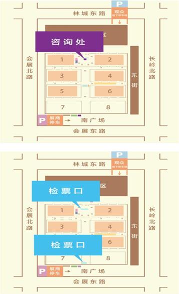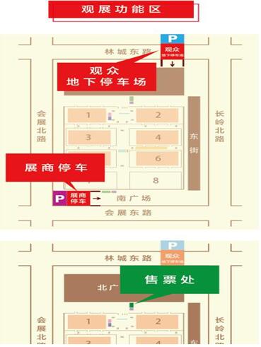 觀眾車停放:會展中心地下停車場,約3000個(gè)車位,林城東路、會展北路均有停車場出入口標(biāo)標(biāo)識牌,觀眾可從林城東路停車場入口進(jìn)入地下停車場。