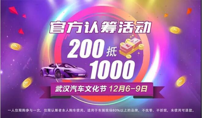活動內容:12月6—9日車展期間,觀眾至車展現場認籌處交納200元,得到一張1000元購車抵扣券