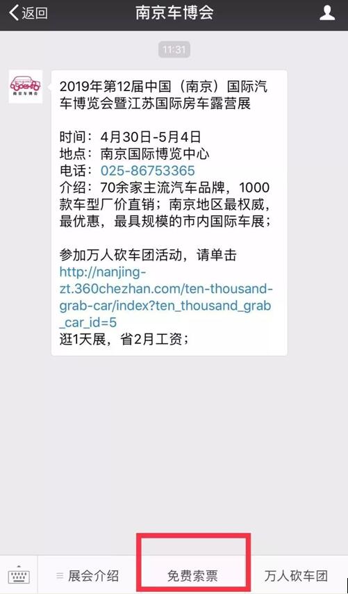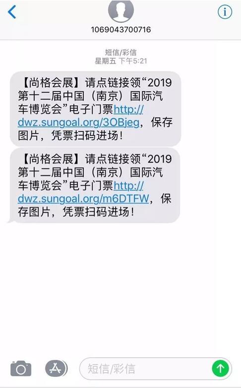3、接下來,請注意接聽來自客服小姐姐的電話,客服將為您發(fā)送車展電子門票。電子門票為一條帶鏈接的短信。點開鏈接,即是電子門票,可截圖,憑票入場。