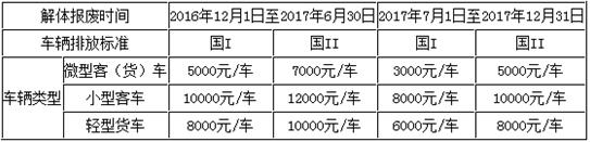2016年11月15日,北京市人民政府辦公廳印發《北京市促進高排放老舊機動車淘汰更新方案》。方案表明,在指定時間內(1年多),北京市財政將對主動申請報廢國一國二車輛的車主,進行補貼,最低5000元/車、最高10000元/車。
