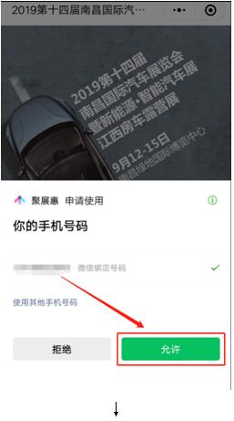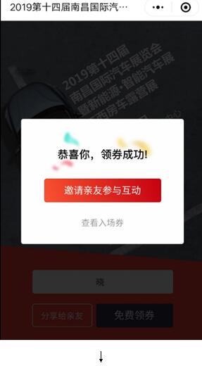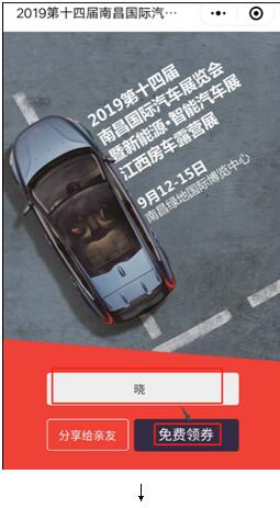 1、識別圖中“南昌國際車展”小程序碼,輸入昵稱點擊“免費搶券”允許小程序授權微信;