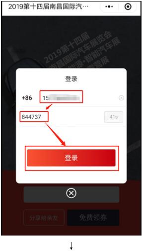 2、輸入手機號和驗證碼點擊登錄后即可領取到免費的南昌國際車展門票。