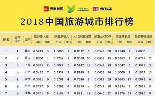 同樣的2018年,重慶成為全國旅游城市第二,并成為全國人民最喜愛的旅游城市。