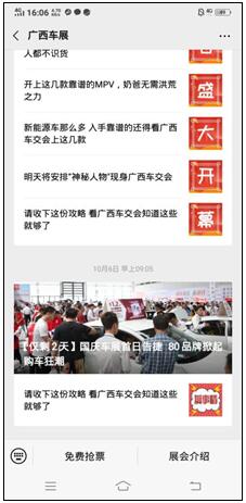 方式一:微信關注“廣西車展”微信公眾號,點擊菜單欄“免費搶票”。