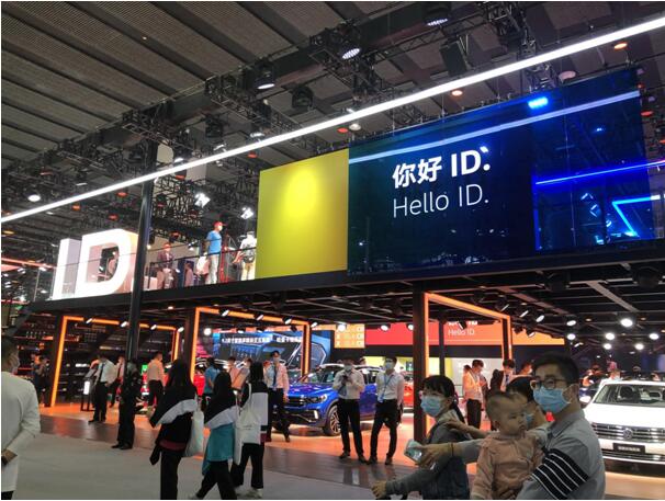 大眾汽車,你好,ID;從新設計、新造型、新技術以及新動力,全面展示大眾汽車對于未來出行的探索和實力加速邁入未來電動進程。展臺設計雙層,燈光閃耀,多色變換,現代、年輕、大膽,富有想象力;讓您更年輕,更有活力呈現。