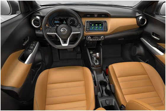 在日產Kicks勁客的內飾部分,我們首先看到了和外觀配色幾乎相同的雙色內飾。內飾的下半部分采用了外觀一樣熱情洋溢的橙色,而上半部分則出于實用的考慮,使用了沉穩的黑色。總體來說,車輛在內飾的設計上還是以簡約為主,實體控制按鍵的數量并不算多,大多數功能都被集成在了多媒體屏幕之中。