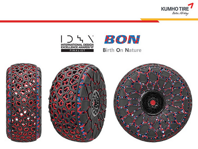 而在輪胎領域內,要設計一款兼顧實用性、環保性、美觀性和價值性的輪胎,打破原有的輪胎制式形態,這對輪胎企業而言極富挑戰性。由于現有的非充氣輪胎大部分都是單向結構形態,這意味著輪胎在高速旋轉時產生的負荷較弱,但是,錦湖輪胎推出的此款概念輪胎BON,其接地面全部采用泰森多邊形(蜂窩)結構,且全向交織,輪胎在任何行駛條件下都能承受高強度負荷及沖擊。與此同時,此款概念輪胎BON還采用高強度材料,與現有產品相比,不僅能確保安全性,還具有減少負荷的效果,從而有效改善汽車油耗。
