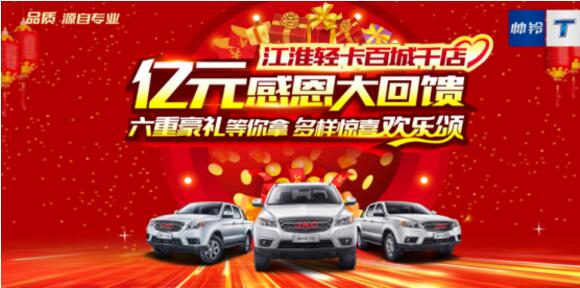 領航高端皮卡的江淮帥鈴皮卡,為感謝廣大用戶一直以來的支持與信賴,特別推出“江淮皮卡百城千店 億元感恩大回饋活動”,6重豪禮歡樂送,江淮皮卡就是這么任性。