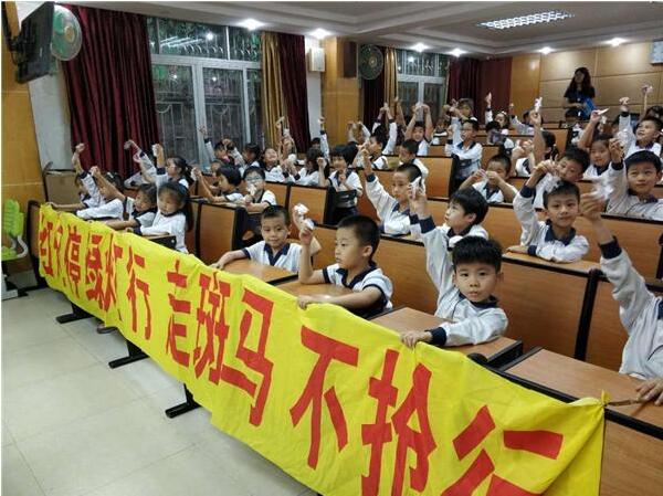 “紅燈停、綠燈行、走斑馬、不搶行!”,小同學們積極踴躍參與課堂互動,課堂紀律性很高,充分體現了蜀小“勤奮、守紀、創新、求美”的良好校風。
