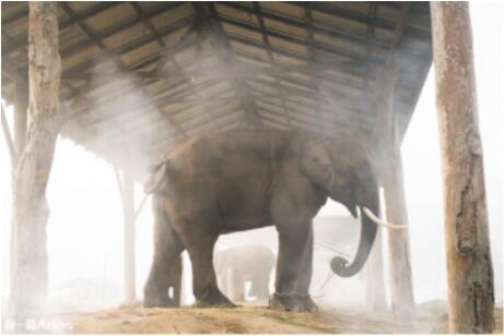 偶爾大象會用泥沙干洗身體防止蚊蟲叮咬,大部分時光它們安靜的拴在棚子下,孤獨的思考。