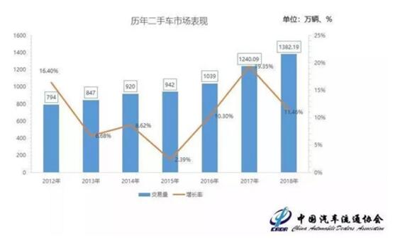 據中國汽車流通協會公布的最新數據顯示,2018年全國累計實現二手車交易1382.19萬輛,同比增長11.46%,這相比于新車市場,可謂是一個歡欣鼓舞的數字了。