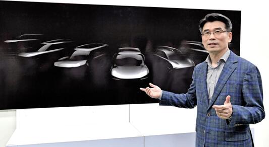 起亞總裁及首席執行官宋虎聲(HoSung Song)發布未來專用電動汽車上市陣容示意圖