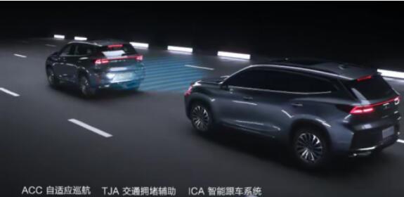 其中,ACC全速域自適應巡航系統和TJA交通擁堵輔助系統相結合,當你遇到堵車,不僅能夠為你提供輔助車道線,而且無需踩油門踏板和制動踏板,系統便會自動保持車距,并跟隨前車行駛,從而減輕頻繁啟停煩惱。