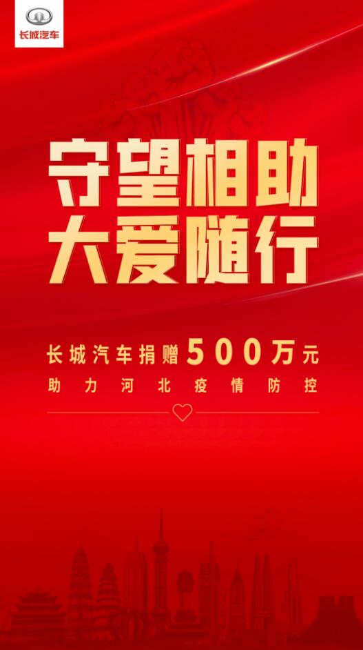 在自身積極參與到抗疫工作的同時(shí),長(zhǎng)城汽車(chē)也向河北省內(nèi)的經(jīng)銷(xiāo)商、供應(yīng)商等相關(guān)方發(fā)起倡議,希望各單位因地制宜,結(jié)合各地實(shí)際情況,為當(dāng)?shù)靥峁┝λ芗暗膮f(xié)助,助力河北省全面打贏抗擊疫情攻堅(jiān)戰(zhàn)。