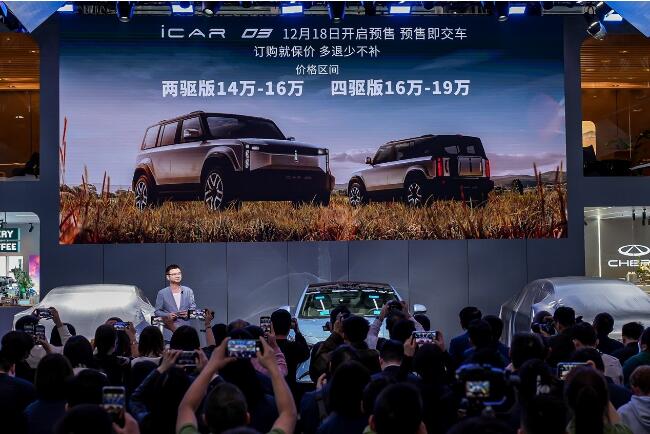 奇瑞汽車股份有限公司總經理助理、iCAR汽車營銷公司總經理張炳鳳表示:我們和用戶玩,是玩真的、玩得起、玩得盡興。本屆廣州車展,iCAR陪年輕人“玩點不一樣”,正式啟動iCAR 03潮盒計劃,四位潮盒主理人、千萬潮盒基金、100+潮盒基地,打造年輕人共創、共潮、共生想象力的超級平臺,成為“年輕人的超級潮盒”。此外,張炳鳳公布了iCAR 03 14萬-19萬的售價區間,新車將于12月18日開啟預售,將為年輕用戶帶來極致潮玩新體驗。