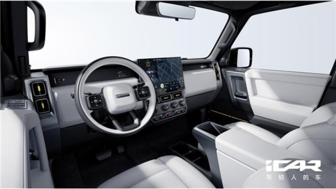 據悉,這款車定位為“風格越野電動城市SUV”。據蘇峻介紹,這款車的“方盒子”造型致敬經典,喚醒用戶群體基因中對越野的向往;不論是四輪四角的設計還是超短前后懸、大軸距,都給人一種“高姿態”的尊崇感,并且為消費者留下了可觀的車內空間。