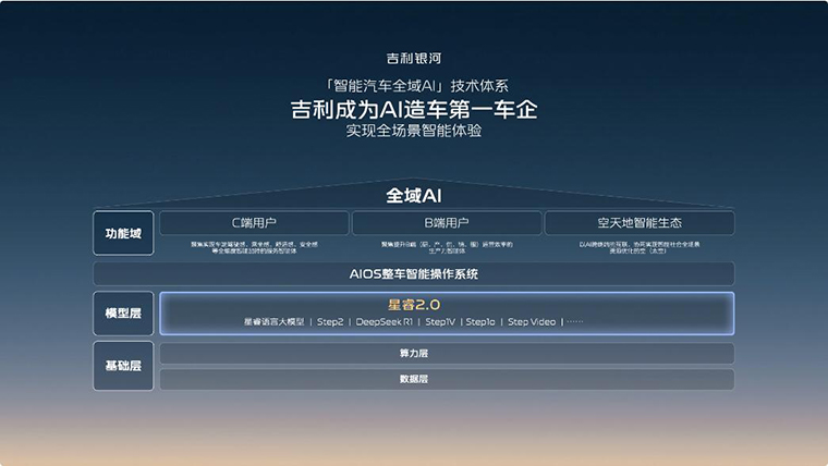 在當下 AI 賽道競爭日益白熱化,烽火硝煙彌漫至汽車產業各個角落。吉利汽車憑借卓越的戰略眼光與深厚的技術積淀,成為全球唯一完成全域AI智能化布局的車企,率先開啟了 AI 造車的嶄新時代。其星睿智算中心2.0算力高達23.5EFLOPS,為星睿AI云動力提供了強大的算力支持,而全球首個汽車行業全棧自研全場景大模型,星睿AI大模型以十余項首創技術,讓汽車擁有了一顆 “最強大腦”,精準理解各類場景,持續優化關鍵策略,讓節能更智能。