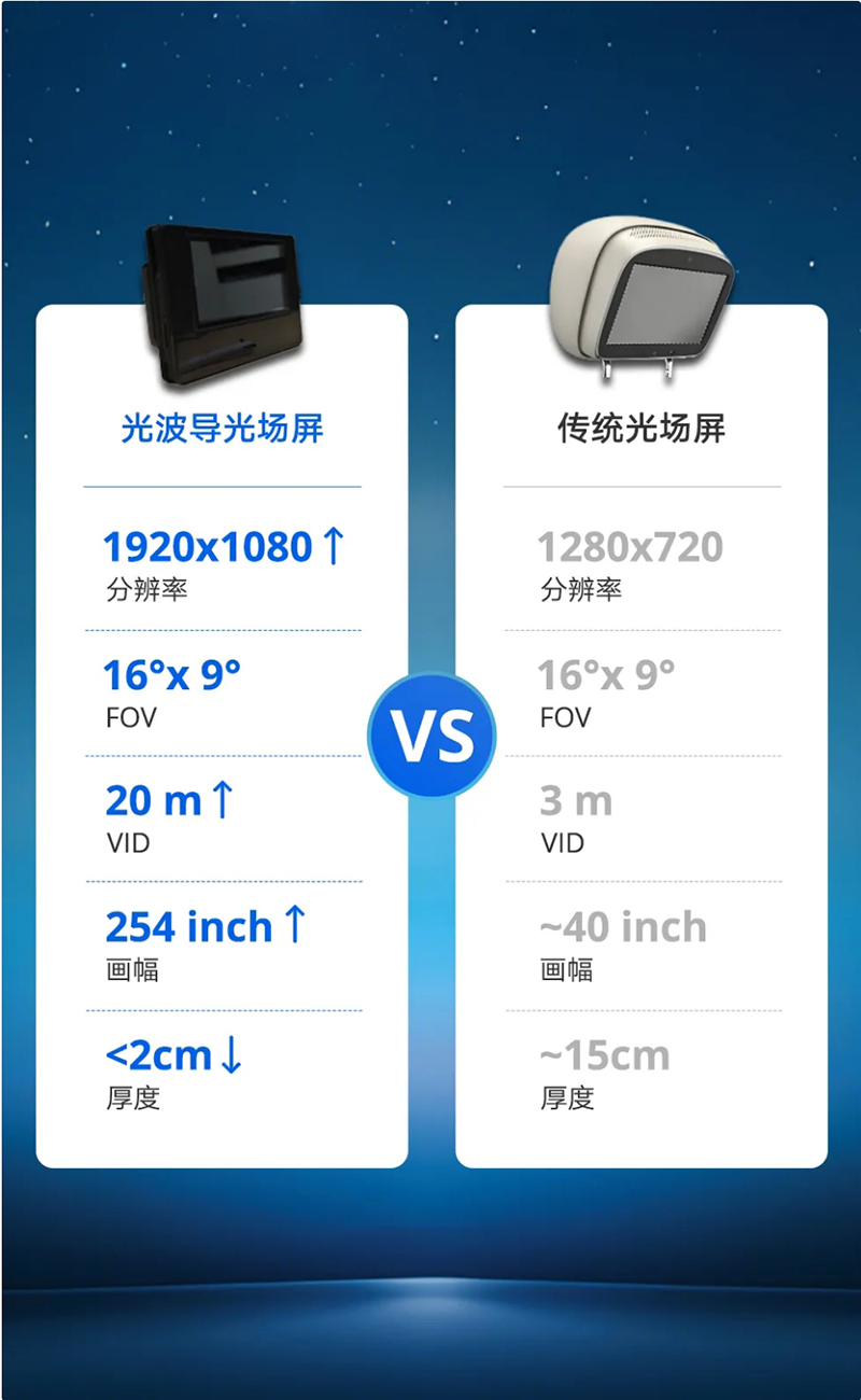 ● 光場屏體積革命:光波導光場屏僅需1L整機體積即可呈現254寸巨幕,打破"屏幕尺寸=空間占比"的傳統認知,以不足傳統設備1/5的體積呈現媲美家庭影院的巨幕效果,徹底終結"大屏必占空間"的設計限制。以后排頭枕、遮陽板等為顯示載體,提供虛像距離20米和高達254英寸的超大畫幅,與車載實體屏相比,能夠極大降低行車觀影眩暈感,提供更加舒適的影院級沉浸體驗和個性化的私密娛樂空間。
