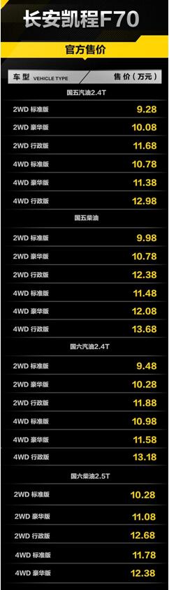 10月28日,長安輕型車旗下全新皮卡——長安凱程F70正式上市。新車共推出滿足國五和國六排放共計(jì)30余種狀態(tài)車型,市場(chǎng)指導(dǎo)價(jià)為9.28-13.98萬元。