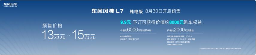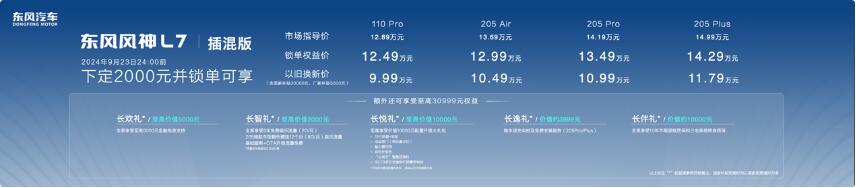 與此同時,東風風神L7插混版,也攜滿滿誠意而來,用戶權益再次升級,即日起至9月23日,2000元下定并鎖單,可享至高2000元抵9000元,同時享受25000元以舊換新補貼,除此之外,還額外享受至高30999元權益。