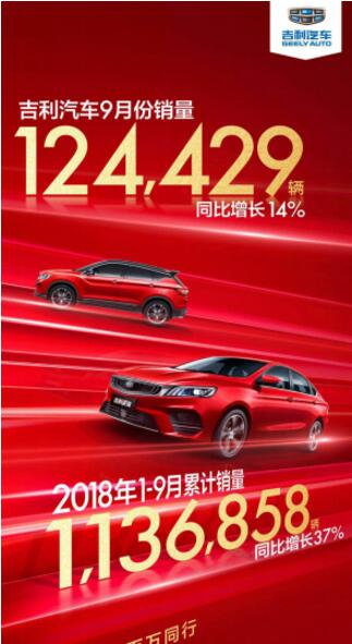 國慶假期剛過,作為自主品牌引領者的吉利汽車就公布了9月銷量喜報。數據顯示,吉利汽車9月銷量共計124,429輛,同比增長14%。至此,吉利前9月累計銷量達到1,136,858輛,同比增長37%,完成其2018年全年銷量目標158萬輛的72%。