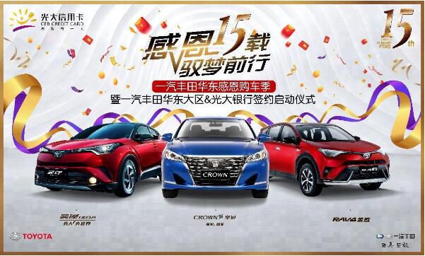 這不,一汽豐田聯合光大銀行搞事情啦,強有力的購車福利說到就到,跨年盛宴—一汽豐田感恩購車季火爆來襲!10月15日-12月31日,針對華東大區光大銀行持卡人,購買一汽豐田CROWN皇冠、RAV4榮放、IZOA奕澤任一車型,即可享受種類多樣、權益豐富的專屬會員禮遇。