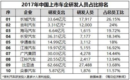 哈弗就是極有代表性的一個(gè)。哈弗多年來(lái)秉持研發(fā)“過(guò)度投入”的理念,至今總投入已超157億,平均每年超過(guò)30億,而且哈弗每年投入依舊不減。2017年《每日經(jīng)濟(jì)新聞》公布,哈弗所屬的長(zhǎng)城汽車(chē),其研發(fā)人員占總員工比為26.15%,平均5名員工里就至少有1名研發(fā)人員。持續(xù)的投入,讓它悄然間成為行業(yè)的佼佼者。全球8大研發(fā)中心的建立,讓其聚集了世界汽車(chē)領(lǐng)域的頂尖人才,研發(fā)領(lǐng)域更是遍及了自動(dòng)駕駛、新能源等方面。這也保證了哈弗的產(chǎn)品處于行業(yè)前列,并有更多的競(jìng)爭(zhēng)優(yōu)勢(shì)。