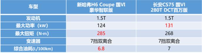 第三回合,車輛動力性能的比拼,雖然長安CS75的最大功率略勝一籌,但新H6 Coupe在更重要的最大扭矩上卻強于長安CS75,綜合來看,新H6 Coupe仍然具有競爭力。
