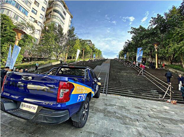 除此之外,長安凱程F70還在重慶長江第一梯挑戰了汽車連續攀爬臺階坡道距離之最的世界紀錄。這個記錄的挑戰難度一點也不亞于之前的定點漂移,因為重慶云陽登云梯共計729級臺階,全程行駛距離437米,垂直高度107米,最大坡度27°。而長安凱程F70僅用2分45秒73的時間就完成了挑戰,而此前的挑戰者成績為4分鐘30多秒,長安凱程F70以近乎一半時間的成績挑戰成功,足以證明車輛的通過性能和動力性能是非常強大的。