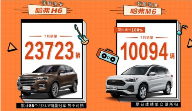 7月,哈弗SUV銷量同比增長11%。其中,“國民神車”哈弗H6銷售23,723輛,累計86個月穩居SUV月度銷量冠軍;“超值家用SUV”哈弗M6銷售10,094輛,同比增長100%;“全球智能潮品”哈弗F7銷售8,157輛,繼續保持強勁勢頭。這些華麗的數字,也進一步印證了消費者對哈弗SUV的廣泛認可,印證了哈弗品牌在用戶心目中與日俱增的號召力。
