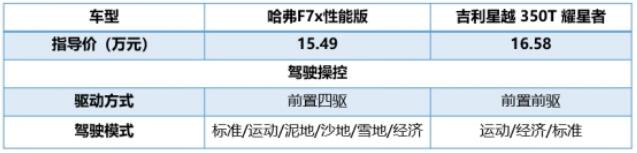 相比之下,吉利星越只有在17-19萬(wàn)元區(qū)間的車(chē)型上才配備了適時(shí)四驅(qū)系統(tǒng),這款350T耀星者搭載的是前驅(qū)系統(tǒng),且僅有3種駕駛模式,因此在整體的操控體驗(yàn)以及復(fù)雜路況的通過(guò)性上,都不及哈弗F7x。