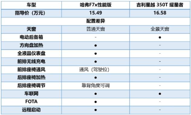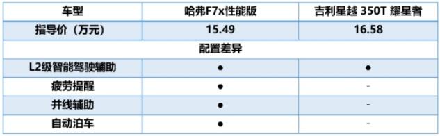 從性能來(lái)看,哈弗F7x可謂天生自帶“運(yùn)動(dòng)屬性”,可輕松地給用戶帶來(lái)更強(qiáng)的操控體驗(yàn)。兩車(chē)的最大功率差異不大,但吉利星越的最大扭矩為350 N.m,相比哈弗F7x 385N·m的表現(xiàn)稍遜一籌,這意味著哈弗F7x在起步加速時(shí)更為迅猛順暢。