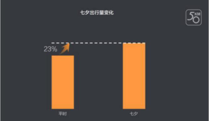 8月25日,正逢中國傳統情人節七夕,借著牛郎織女鵲橋相會的美好寓意,現實中的情侶們也紛紛以愛情之名約會。在這一天,男生們往往會送上口紅、蛋糕、紅玫瑰等小禮物,浪漫溫馨讓甜蜜加倍。根據滴滴出行大數據分析顯示,在往年七夕期間,滴滴總體出行量同比增長23%,即使是在工作日,工作的繁忙也依然沒能減少人們約會的熱情。