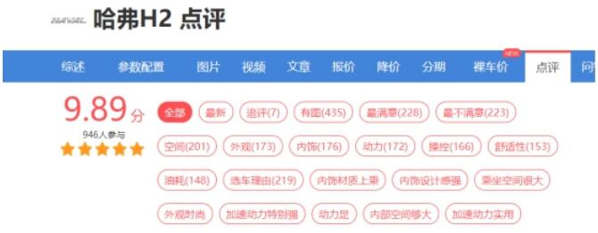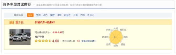 而在易車的車主點評中,哈弗H2同樣得到了9.89分(10分制)的行業高分。在消費者滿意度方面,其空間、外觀、內飾、動力、操控……紛紛榜上有名,贏得大批擁躉的青睞,哈弗H2也成為小型SUV市場的流量先鋒。