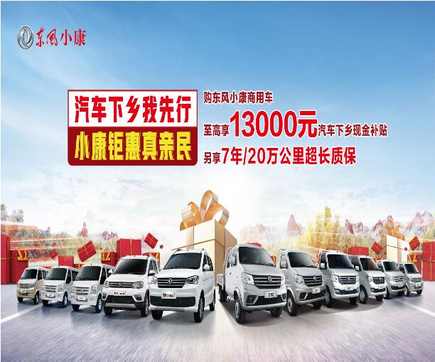 在全國各級勞模享受的勞模專屬福利優惠之外,各級勞模還可同時享受東風小康商用車新近推出的“汽車下鄉”政策福利。目前,在商用車國五區域,購東風小康商用車至高享13000元汽車下鄉現金補貼,在國六區域購東風小康商用車至高享7000元汽車下鄉現金補貼,并享受7年/20萬公里超長質保,補貼范圍覆蓋C31、C36、C37、C51L、C52L、D51、D52、K02、K02S等多款主力車型。