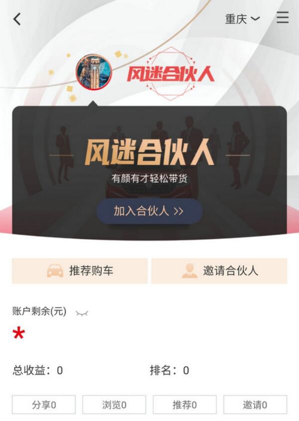 在風光e家,每一位用戶注冊即可成為風迷合伙人,通過進行二維碼邀約、活動分享、車型海報多場景分享等,帶動更多風迷粉絲加入超級風迷大家庭,以自身影響力、豐富的圈層與東風風光一起共創品牌信賴與產品分享。更為重要的是,“風迷合伙人”的領袖精神還可影響更多的粉絲和網友們,在獲得傭金回饋的同時,也讓更多風迷享受專屬折扣與福利,一舉達成分享共創。每一位風迷合伙人,都是東風風光和超級風迷大家庭向上發展的卓越貢獻者,借助風光e家平臺實現個體價值的輸出。