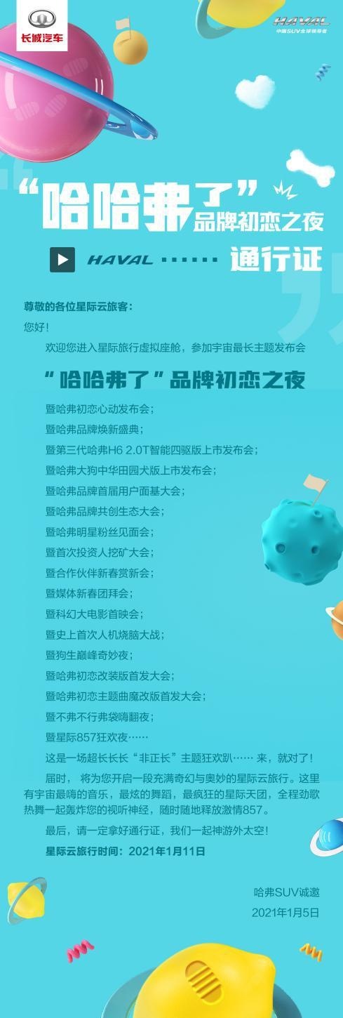 在剛剛結(jié)束的2020年,一場場規(guī)模盛大,形式多樣的跨年晚會無疑成為了新年來臨之際街頭巷尾的熱議話題。如果可以選擇,你愿意參加一場怎樣的晚會?有特色?夠夢幻?有歌曲有明星?要嗨要盡興?你想要的這些都可以有! 1月11日,哈弗品牌將率先發(fā)聲,攜手眾多頂級流量明星,帶來重磅網(wǎng)紅新車,用一場燃爆的開年大戲來寄語新一年的美好展望。