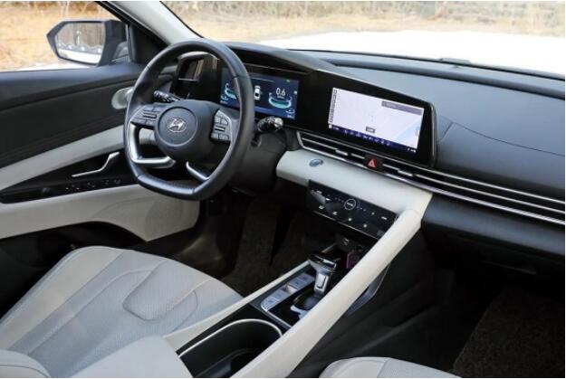 打開第七代伊蘭特車門,往“沉浸式座艙”一坐,首先就能感受到一種駕馭跑車式的氛圍。現代汽車第三代技術平臺i-GMP帶來的下置式設計,讓第七代伊蘭特的底盤更低,車身高度、車廂地板、座椅等布局也進行了下調,因此駕駛員的坐姿猶如開跑車一般,視野卻非常開闊。環抱式的座艙、飛航式換擋桿,加上副駕駛結構扶手,完全展現了飛機駕駛艙般的“駕駛員中心”設計靈感,讓人好感度直線UP。